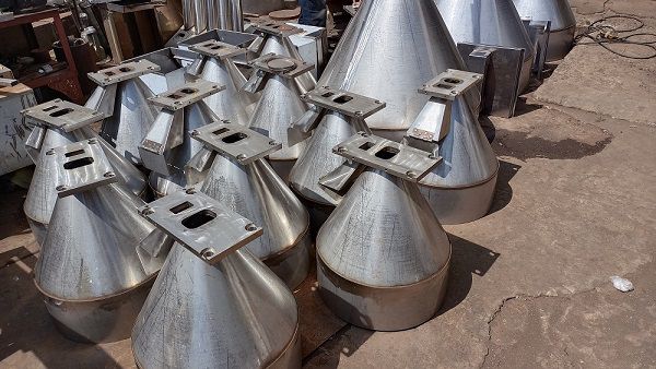 剛交付完成一批料斗的機(jī)械加工